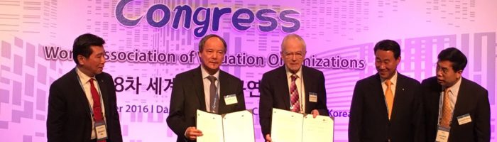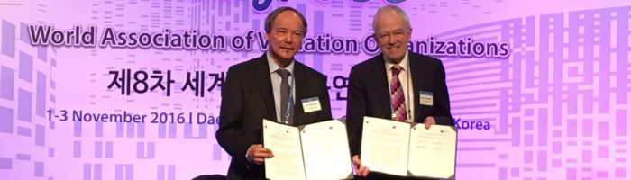 The International Valuation Standards Council (IVSC) and The World Association of Valuation Organisations (WAVO) successfully signed a Memorandum of Cooperation (MOC) between Sir David Tweedie, Chairman of IVSC Board of Trustees and Dr Lim Lan Yuan JP, Executive President of WAVO at the 8th WAVO Congress in Daegu, Republic of Korea on 2 November 2016.